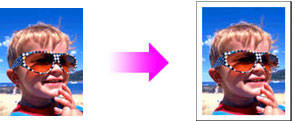 滿版列印時,影像被稍稍擴大。因此,影像的邊緣由於略大於紙張而不被列印。
