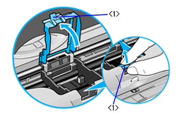 <1> 墨水盒標記與列印頭鎖定桿標記