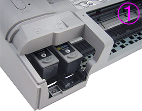 向上推動墨水盒,直至墨水盒鎖定到位。