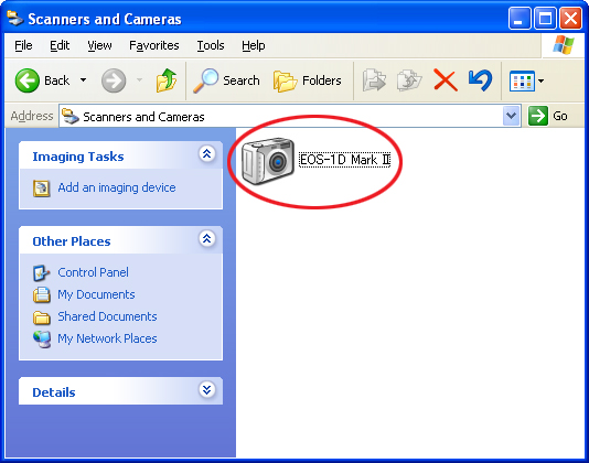 如果 [EOS-1D Mark II] 未出現在 [掃描器和相機] 對話方塊中,請關閉對話方塊,然後轉到步驟 12。