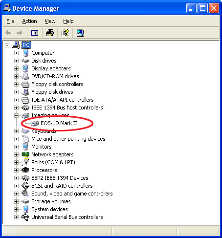 (13-4) 重複此步驟 (13-2) 直到 [EOS-1D Mark II] 或 [佳能數碼相機] 圖示不再顯示在各個裝置下。