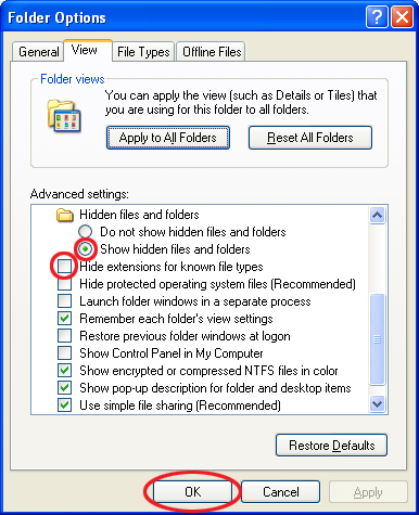 (14-3) 在 [隱藏的檔案和資料夾] 中選擇 [顯示隱藏的檔案和資料夾] 選項按鈕,然後取消選擇 [隱藏已知檔案類型的副檔名] 核選方塊。