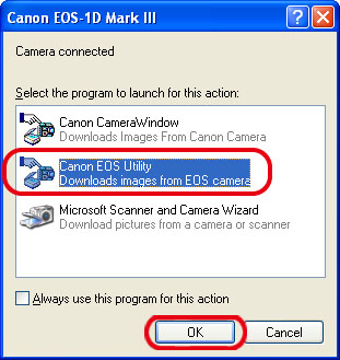 如果出現選擇程式(應用程式)的視窗,請選擇[Canon EOS Utility]。