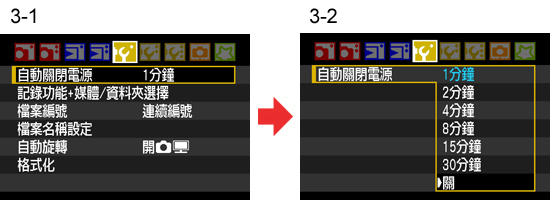 有關自動關閉電源設定的資訊,請參閱相機隨附的使用說明書。