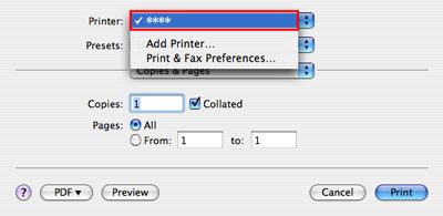 2. 在彈出的「印表機(Printer)」功能表中,選擇使用的印表機。