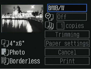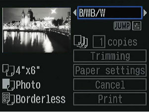 黑白色列印如實地反映選擇的「相片風格」及簡易影像調整
