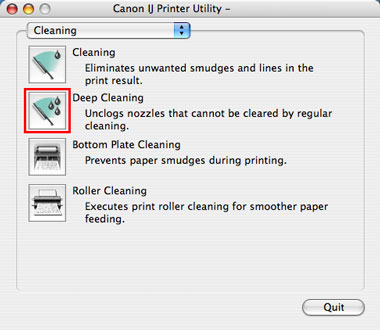 --> 按一下[清潔(Cleaning)]執行列印頭清潔。