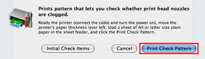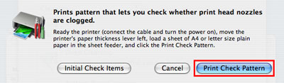 - 按一下[列印檢查圖案(Print Check Pattern)]前透過按一下[最初確認項目(Initial Check Items)],可以查看「噴嘴檢查(Nozzle Check)」中的具體確認項目。