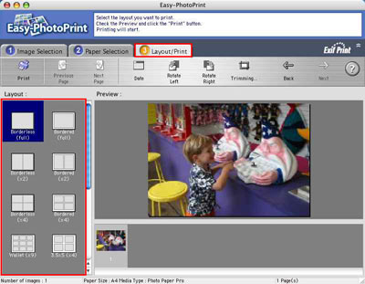 4. 按一下「3. 佈置/列印(Layout/Print)」選項頁顯示「佈置/列印(Layout/Print)」頁,在「佈置(Layout)」部份選擇列印佈置。