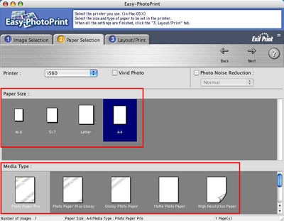 3. 從「紙張大小(Paper Size)」及「媒體類型(Media Type)」部份選擇所需的紙張大小及媒體類型。