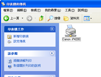 10)將在「印表機和傳真」視窗中創建 Canon iP4200 圖示。