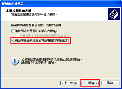 如何從「新增印表機」圖示新增一台共用印表機(Windows XP -> Windows XP)
