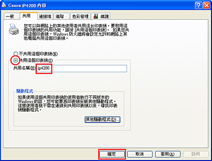 下面介紹使用 iP4200 作為共用印表機的示例。