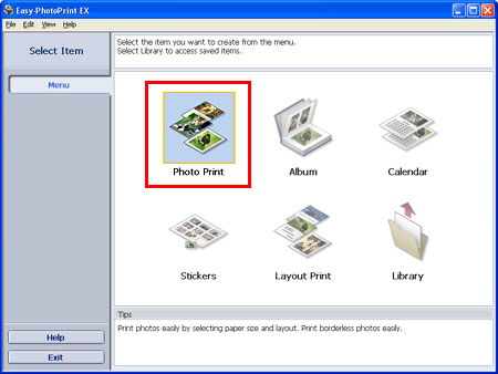 1. 從「功能表(Menu)」中按一下「相片列印(Photo Print)」。