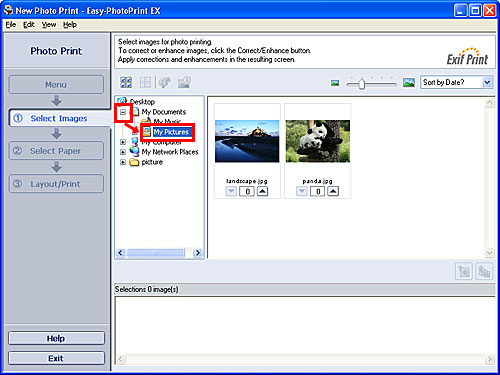 如何透過在「Easy-PhotoPrint EX」中選取一個資料夾來顯示圖片(Windows/Mac OS X)