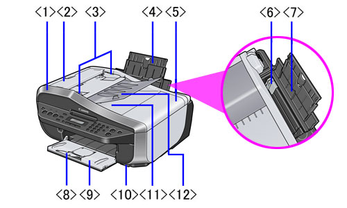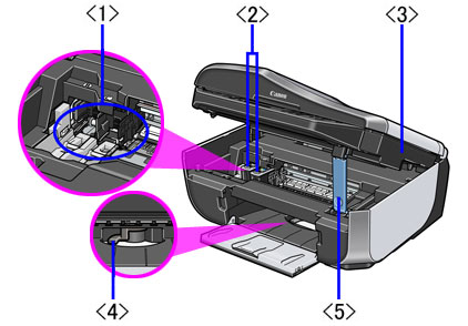 用於掃描文件。開啟以更換墨水盒或取出夾紙。