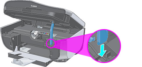 - 如果開啟掃描單元(印表機上蓋)超過十分鐘,列印頭將移至右側。
