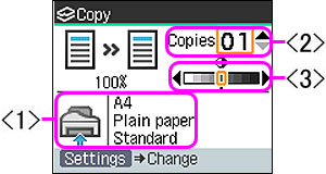 < 2 >使用上/下箭頭按鈕指定影印數量。