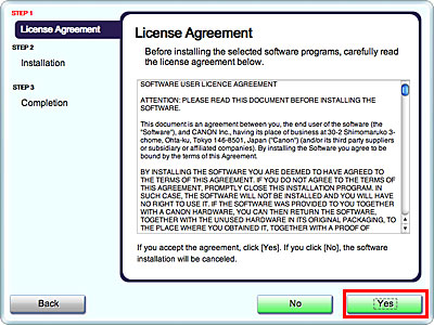 9. 請仔細閱讀「許可協定(License Agreement)」,如果同意,請按一下[是(Yes)]。