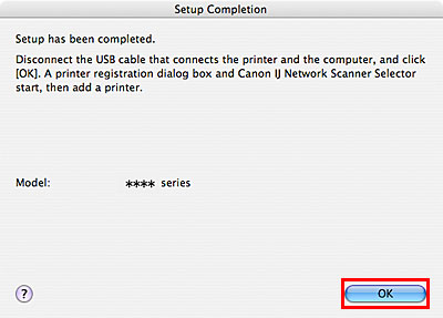 17. 顯示「安裝完成(Setup Completion)」對話方塊時,請拔掉 USB 電纜線,按一下[確定(OK)]。