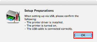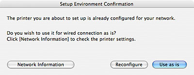 如果已經配置了印表機的網路設定,將顯示「安裝環境確認(Setup Environment Confirmation)」對話方塊,以確認使用當前設定的印表機。