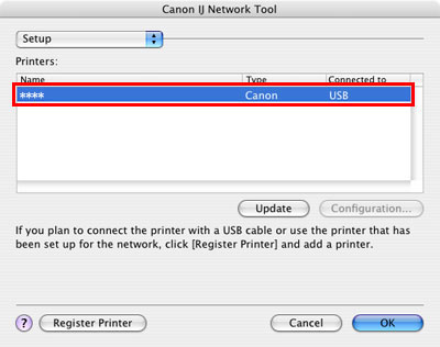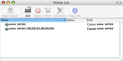 18. 將啟動「印表機安裝工具程式(Printer Setup Utility)」(Mac OS X v.10.2.8 中為「印表機中心(Print Center)」)及「Canon IJ 網路掃描器選擇器(Canon IJ Network Scanner Selector)」。