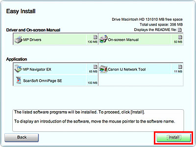 - 可以使用「簡易安裝(Easy Install)」或「自訂安裝(Custom Install)」來安裝「MP 驅動程式(MP Drivers)」。