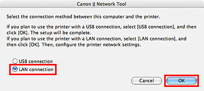 選擇「LAN 連接(LAN connection)」,然後按一下[確定(OK)]。