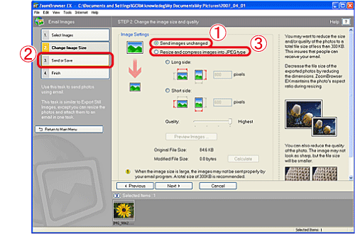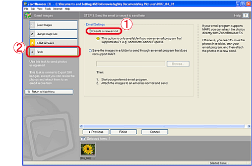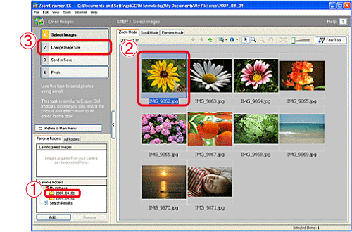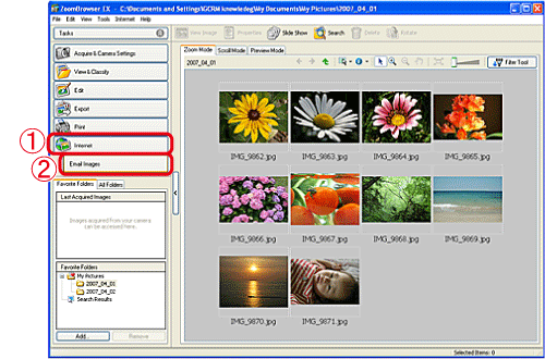 使用電郵傳送下載的影像至「ZoomBrowser EX」