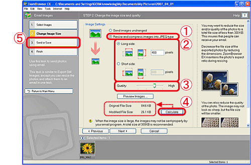 5. 要變更影像大小或畫質,請按以下說明操作。