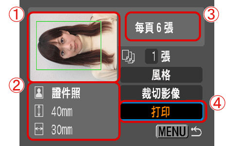 6. 出現[風格]設定螢幕。本說明介紹如何製作 40mm x 30mm 證件照。