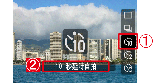 設定自拍為 10 秒或 2 秒