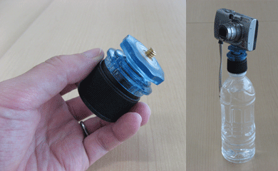 您也可以用塑料瓶製做一個三腳架,如下圖所示。這比三腳架更簡易、攜帶更方便。