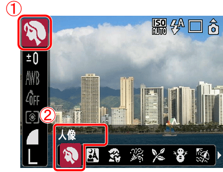 選擇[人像]模式 ( ),然後按<FUNC.SET>按鈕 ( )。