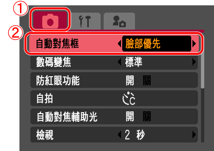 設定自動對焦框(設定自動對焦框至臉部優先)