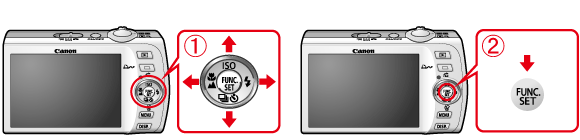 要選擇液晶螢幕上顯示的項目,如下所示,請按相機的(上、下、左及右)按鈕。