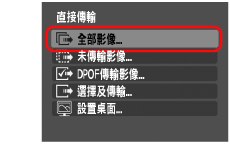 6. 相機的液晶螢幕上出現下列選單後,請選擇[全部影像](以下載記憶卡中記錄的所有影像)。