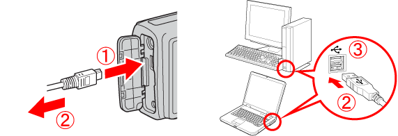 1. 使用相機隨附的介面連接線連接相機的 DIGITAL 端子至電腦的 USB 連接埠。