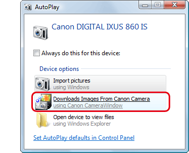 按一下[從佳能相機下載影像(Downloads Images From Canon Camera )]。