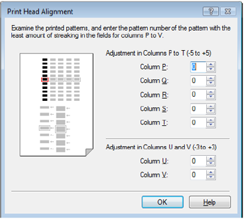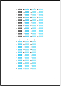 (1) 查看列印的圖案並在欄 P 區域內選擇條紋最不明顯的圖案數值。