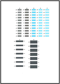 7. 參見第三個列印輸出並調整列印頭位置。