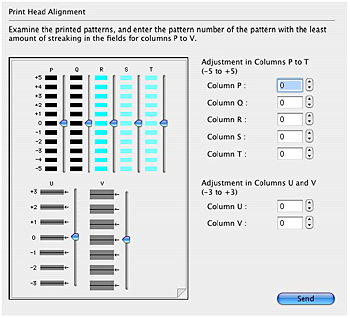(3) 選擇手動校準列印頭對話方塊,然後按一下「傳送(Send)」。