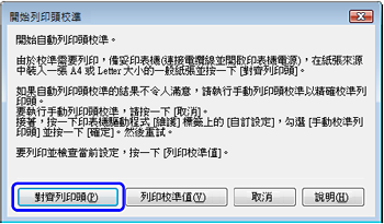 (3) 確認顯示的訊息並按一下「列印頭校準」。
