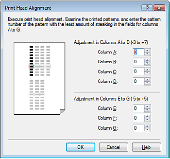 5. 參見第一個列印輸出並調整列印頭位置。