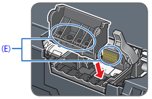 請勿觸摸列印頭噴嘴 (C) 和電氣觸點 (D)。