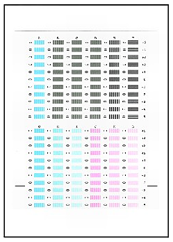 (1) 查看列印的圖案並用黑色鉛筆或黑色墨水筆填入相應的圓圈,以在欄 A 區域內選擇具有條紋最不明顯的圖案。