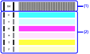 (2) 如果這些圖案有白色條紋,需要清潔列印頭噴嘴。