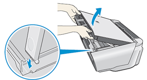 輕輕抬起掃描單元 (印表機蓋) 並將掃描單元支架放回