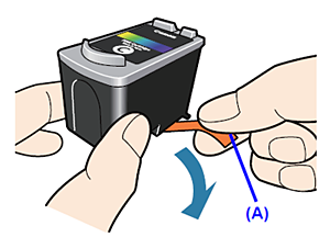 (1) 拆開新 FINE 墨盒並輕輕撕下保護膠帶 (A)。