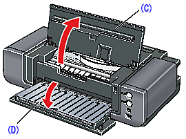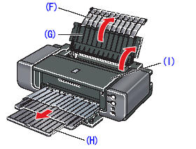 5. 關閉機蓋。 抬起托紙架和托紙架擴展架將二者開啟,然後拉出前端托盤擴展架。